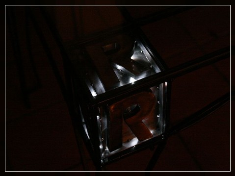 Buchstaben oder Logo können ebenso wie es im Beispiel in den Ecken des Tisches der Fall ist, in Stühlen und Bänken integriert werden!